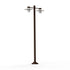 Lampadaire 2 têtes AUBANNE en aluminium, E27, IP44, classe 1, réflecteurs en polycarbonate opale, diffuseurs verre dépoli. Teinte Rouille 046. Garantie 25 ans anticorrosion sur l'aluminium