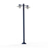 Lampadaire 2 têtes AUBANNE en aluminium, E27, IP44, classe 1, réflecteurs en polycarbonate opale, diffuseurs verre dépoli. Teinte RAL 5011 Bleu acier 065. Garantie 25 ans anticorrosion sur l'aluminium