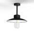 Plafonnier BELCOUR, en aluminium, E27, IP44, classe 1, diffuseur verre clair. Réflecteur blanc. Teinte RAL 9005 Noir foncé 000. Garantie 25 ans anticorrosion sur l'aluminium