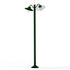 Lampadaire BELCOUR 2 têtes en aluminium, E27, IP44, classe 1, diffuseur verre clair. Réflecteurs blanc. Teinte RAL 6009 Vert anglais 019. Garantie 25 ans anticorrosion sur l'aluminium