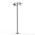 Lampadaire BELCOUR 2 têtes en aluminium, E27, IP44, classe 1, diffuseur verre dépoli. Réflecteurs blanc. Teinte Gris métal 023. Garantie 25 ans anticorrosion sur l'aluminium