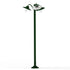 Lampadaire BELCOUR 3 têtes, en aluminium, E27, IP44, classe 1, diffuseur verre clair. Réflecteurs blanc. Teinte RAL 6009 Vert anglais 019. Garantie 25 ans anticorrosion sur l'aluminium