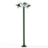 Lampadaire BELCOUR 3 têtes, en aluminium, E27, IP44, classe 1, diffuseur verre dépoli. Réflecteurs blanc. Teinte RAL 6009 Vert anglais 019. Garantie 25 ans anticorrosion sur l'aluminium