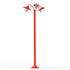 Lampadaire BELCOUR 3 têtes, en aluminium, E27, IP44, classe 1, diffuseur verre dépoli. Réflecteurs blanc. Teinte RAL 3020 Rouge signalisation 056. Garantie 25 ans anticorrosion sur l'aluminium