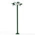 Lampadaire BELCOUR 3 têtes, en aluminium, E27, IP44, classe 1, diffuseur verre dépoli. Réflecteurs blanc. Teinte RAL 6009 Vert sapin 067. Garantie 25 ans anticorrosion sur l'aluminium