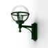 Applique montante BOREAL, en aluminium, E27, IP44, IK08, classe 1, globe Ø200 méthacrylate fumé. Teinte RAL 6009 Vert anglais 019. Garantie 25 ans anticorrosion sur l'aluminium