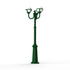Lampadaire 3 têtes BOREAL, E27, IP44, IK08, classe 1, en aluminium globes Ø200 méthacrylate opale. Teinte RAL 6009 Vert sapin 067. Garantie 25 ans anticorrosion sur l'aluminium
