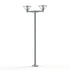 Lampadaire BERMUDE, IP44, classe 1, 2 têtes en aluminium, E27, réflecteurs aluminium blanc, diffuseurs verre dépoli. Teinte RAL 7044 Gris soie 105. Garantie 25 ans anticorrosion sur l'aluminium