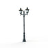 Lampadaire 2 têtes CITADELLE avec couronne, en aluminium, E27, IP66, classe 1, vasques méthacrylate opale. Finition Patine vert de gris 008. Garantie 25 ans anticorrosion sur l'aluminium