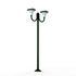 Lampadaire DALLAS 2 têtes, bras courbes, en aluminium, E27, IP44, IK10, classe 1, hauteur 2355mm, diffuseurs polycarbonate opale. Teinte RAL 6009 Vert anglais 019. Garantie 25 ans anticorrosion sur l'aluminium