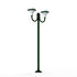 Lampadaire DALLAS 2 têtes, bras courbes, en aluminium, E27, IP44, IK10, classe 1, hauteur 2355mm, diffuseurs polycarbonate opale. Teinte RAL 6009 Vert sapin 067. Garantie 25 ans anticorrosion sur l'aluminium