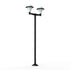 Lampadaire DALLAS 2 têtes, bras droits, en aluminium, E27, IP44, IK10, classe 1, hauteur 2437mm, diffuseurs polycarbonate opale. Teinte RAL 9005 Noir foncé 000. Garantie 25 ans anticorrosion sur l'aluminium