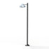 Lampadaire 1 tête FAKTORY, réflecteur intérieur noir, E27, IP44, classe 1, diffuseur verre clair. Matière lanterne : zinc brut 092. Matière mât, bras : aluminium, teinte RAL 9005 noir foncé 000