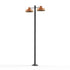 Lampadaire 2 têtes FAKTORY, réflecteurs intérieurs noirs, E27, IP44, classe 1, diffuseurs verres clairs. Matière lanternes : cuivre vernis sans patine 084. Matière mât, bras : aluminium, teinte RAL 9005 noir foncé 000