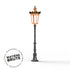 Borne LOUVRE, LED 13W 2700°K, IP44, classe 1, diffuseur verre clair. Matière lanterne: Cuivre brut 082 - Matière borne: Aluminium: Teinte RAL 9005 Noir foncé 000 + couronne dorée