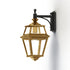 Applique descendante PLACE DES VOSGES 2, E27, IP44, classe 1, diffuseurs verre clair. Matière lanterne : laiton vernis teinté 070. Matière potence : aluminium, teinte RAL 9005 noir foncé 000