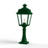 Borne PLACE DES VOSGES TRADITION en aluminium, hauteur 616mm, E27, IP44, classe 1, diffuseurs verre clair. Teinte RAL 6009 Vert sapin 067. Garantie 25 ans anticorrosion sur l'aluminium