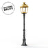 Borne PLACE DES VOSGES TRADITION, h=1300mm, E27, IP44, classe 1, diffuseur verre clair. Matière lanterne: Laiton brut 072 - Matière borne: Aluminium Teinte RAL 9005 Noir foncé 000