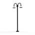 Lampadaire 2 têtes BOLERO, hauteur 2345mm, en aluminium, E27, IP23, classe 1, diffuseurs verre clair prismatique. Teinte RAL 9005 Noir foncé 000. Garantie 25 ans anticorrosion sur l'aluminium