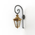 Applique crosse VICTORIA, E27, IP44, classe 1, diffuseurs polycarbonate clair. Matière lanterne : laiton vernis teinté 070. Matière potence : aluminium, teinte RAL 9005 noir foncé 000