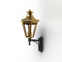 Applique montante VICTORIA, E27, IP44, classe 1, diffuseurs polycarbonate clair. Matière lanterne : laiton vernis teinté 070. Matière potence : aluminium, teinte RAL 9005 noir foncé 000