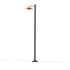 Lampadaire 1 tête COOPER en aluminium, E27, IP65, classe 2, diffuseur verre soufflé clair. Réflecteur Teinte RAL 2004 Orangé pur 014. Mât, bras : teinte Noir velours 113. Garantie 25 ans anticorrosion sur l'aluminium