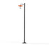 Lampadaire 1 tête COOPER en aluminium, E27, IP65, classe 2, diffuseur verre soufflé opale. Réflecteur Teinte 2004 Orangé pur 014. Mât, bras : teinte Noir velours 113. Garantie 25 ans anticorrosion sur l'aluminium