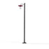 Lampadaire 1 tête COOPER en aluminium, E27, IP65, classe 2, diffuseur verre soufflé opale. Réflecteur Teinte RAL 3005 Rouge vin 066. Mât, bras : teinte Noir velours 113. Garantie 25 ans anticorrosion sur l'aluminium
