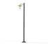 Lampadaire 1 tête COOPER, E27, IP65, classe 2, diffuseur verre soufflé opale. Matière Réflecteur : laiton brossé vernis 075. Matière mât, bras : aluminium, teinte Noir velours 113