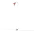 Lampadaire 1 tête COOPER en aluminium, E27, IP65, classe 2, diffuseur verre soufflé opale. Réflecteur Teinte RAL 3013 Rouge tomate 110. Mât, bras : teinte Noir velours 113. Garantie 25 ans anticorrosion sur l'aluminium