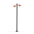 Lampadaire 2 têtes COOPER en aluminium, E27, IP65, classe 2, diffuseurs verre soufflé clair. Réflecteurs Teinte RAL 2004 Orangé pur 014. Mât, bras : teinte Noir velours 113. Garantie 25 ans anticorrosion sur l'aluminium
