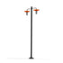 Lampadaire 2 têtes COOPER en aluminium, E27, IP65, classe 2, diffuseurs verre soufflé opale. Réflecteurs Teinte RAL 2004 Orangé pur 014. Mât, bras : teinte Noir velours 113. Garantie 25 ans anticorrosion sur l'aluminium