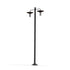 Lampadaire 2 têtes COOPER en aluminium, E27, IP65, classe 2, diffuseurs verre soufflé opale. Réflecteurs Teinte Rouille 046. Mât, bras : teinte Noir velours 113. Garantie 25 ans anticorrosion sur l'aluminium