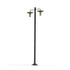 Lampadaire 2 têtes COOPER en aluminium, E27, IP65, classe 2, diffuseurs verre soufflé opale. Réflecteurs Teinte RAL 6025 Vert fougère 109. Mât, bras : teinte Noir velours 113. Garantie 25 ans anticorrosion sur l'aluminium