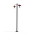 Lampadaire 2 têtes COOPER en aluminium, E27, IP65, classe 2, diffuseurs verre soufflé opale. Réflecteurs Teinte RAL 3013 Rouge tomate 110. Mât, bras : teinte Noir velours 113. Garantie 25 ans anticorrosion sur l'aluminium