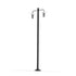 Lampadaire 2 têtes COOPER, E27, IP65, classe 2, diffuseurs verre soufflé opale. Matière Réflecteurs : émaillé blanc 131. Matière mât, bras : aluminium, teinte Noir velours 113