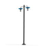 Lampadaire 2 têtes COOPER en aluminium, E27, IP65, classe 2, diffuseurs verre soufflé opale. Réflecteurs Teinte RAL 5009 Bleu azur 134. Mât, bras : teinte Noir velours 113. Garantie 25 ans anticorrosion sur l'aluminium