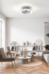Plafonnier ventilateur Alisio mini aluminium gris 70W 7700 lumens 2700-5000K,  moteur 30W, diamètre 52,5 cm, diamètre de la base 29 cm, hauteur 16,5 cm. Livré avec une télécommande. Il dispose de 4 vitesses dont un mode silencieux, il est réversible fonction hiver et été.