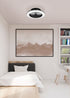 Plafonnier ventilateur Alisio mini aluminium noir 70W 7700 lumens 2700-5000K,  moteur 30W, diamètre 52,5 cm, diamètre de la base 29 cm, hauteur 16,5 cm. Livré avec une télécommande. Il dispose de 4 vitesses dont un mode silencieux, il est réversible fonction hiver et été.