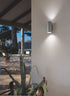 Applique JUBO en aluminium avec diffuseur en verre 2xGU10, hauteur 21,5 cm longueur 12 cm, IP54, pour un éclairage direct indirect de vos façades extérieures.