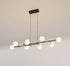 Lustre Cellar aluminium noir 8 lumières, verres opales blancs, longueur 116 cm, largeur 40 cm hauteur maximale 160 cm, 8 x 5W 500 lumens 3000k G4 inclues.