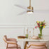 Le plafonnier ventilateur Sydney  allie élégance et performance avec son design en aluminium blanc et or. Son moteur puissant de 32W entraîne trois pales de 135,2 cm de diamètre, offrant une ventilation efficace et silencieuse. Réglable en hauteur grâce à deux tiges (34 cm ou 46,5 cm), il propose six vitesses et une luminosité de 2352 lumens réglable entre 3000 et 6000K. Sa fonction réversible hiver/été optimise le confort toute l’année. Livré avec télécommande, ce plafonnier ventilateur s’intègre parfaitement à tous les styles d’intérieur.