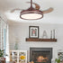 Plafonnier ventilateur MEDITERRANEE en aluminium marron pâles rétractables en plexiglass fumé 35w 4093 lumens 2700-6000k, diamètre 91,4 cm pâles déployées, hauteur 37,5 cm ou 50 cm suivant tiges utilisées, il dispose de 6 vitesses, livré avec télécommande.
