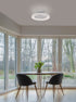 Plafonnier ventilateur Tibet en aluminium blanc 70w 7700 lumens 2700-5000k, moteur 33w, diamètre 53 cm, hauteur 18,5 cm, base du diamètre 27,5 cm. Il dispose de 3 vitesses, un mode silencieux.